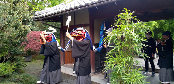 爽やかな新緑が眩しいへき亭に、コロナの収束を願って獅子舞がやってきてくれました!