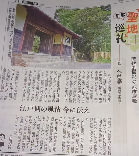 「京都・絵の旅」をテーマに、へき亭が紹介されました。