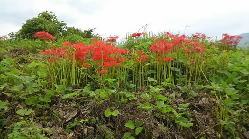 曼珠沙華満開です!すぐそばで見られますので是非この時期にお越し下さい。