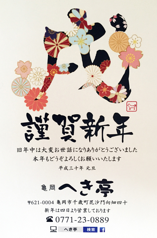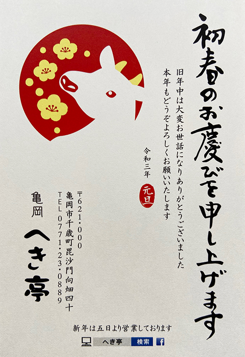 本年も引き続きへき亭をご愛顧賜わりますようお願い申しげます。